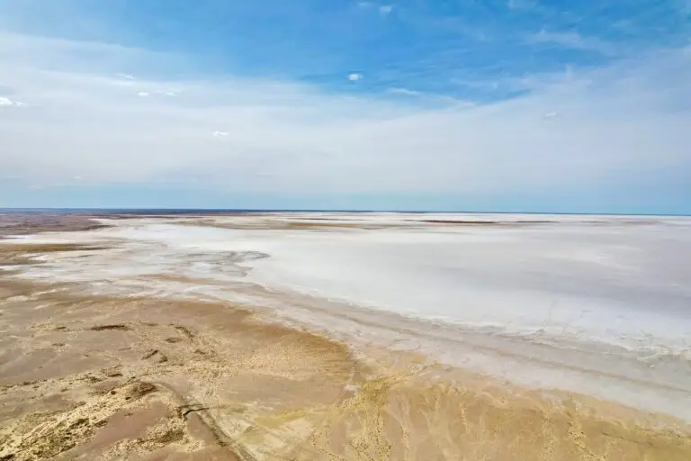 Lake Eyre im Outback South Australias ist der größte Salzsee der Welt, obwohl es sich normalerweise um eine trockene Salzwüste handelt.